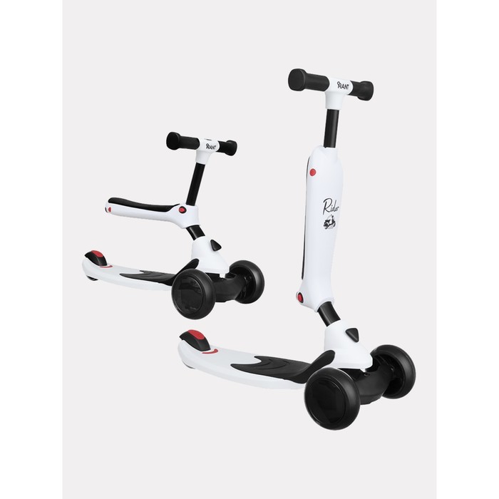 Беговел-самокат детский Rant Rider, со светящимися колёсами, цвет белый