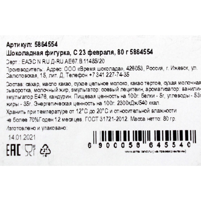 При производстве фигурок используется только качественный бельгийский шоколад. Все изделия производятся на итальянском оборудовании, поэтому шоколад всегда правильно темперирован, имеет цельную текстуру без разводов, пузырьков и не белеет раньше срока. Такая фигурка - отличный и небанальный подарок на любой случай, который не только станет украшением праздника, но и порадует своим вкусом.