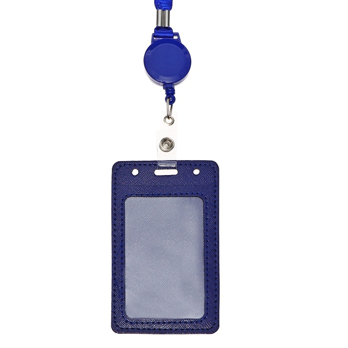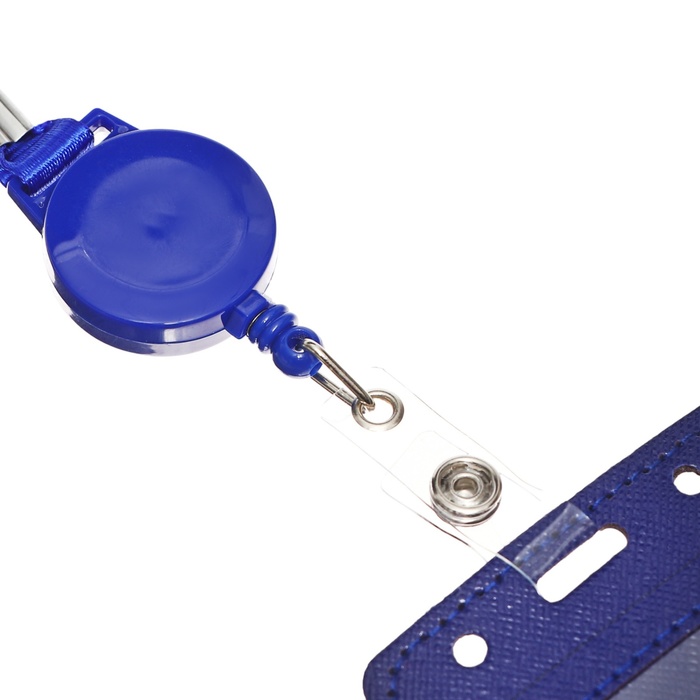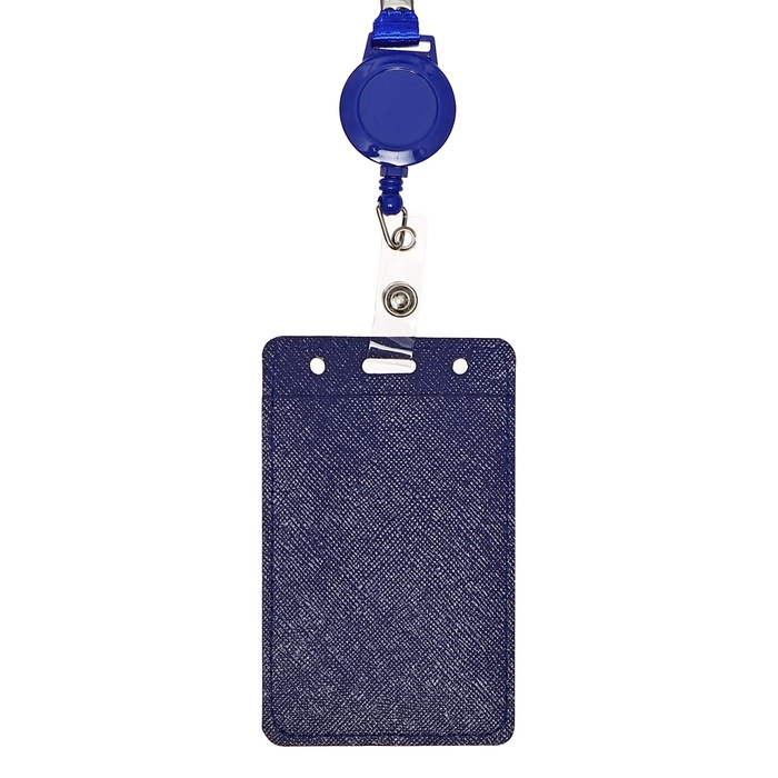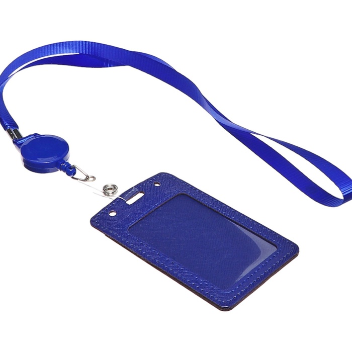 Бейдж - карман вертикальный кожзам, внешний размер 110×68 мм, внутренний размер 85×54 мм, лента 80×1.2 см, синий