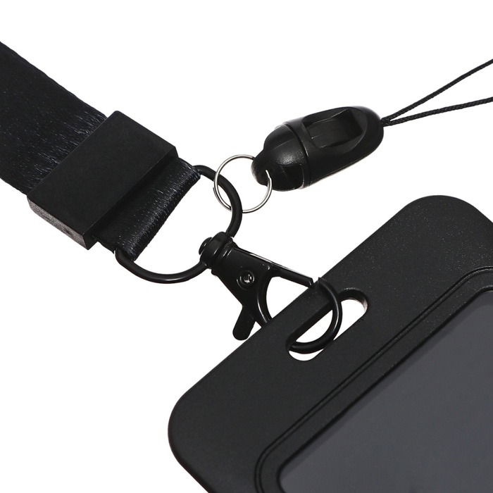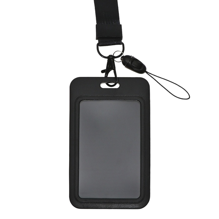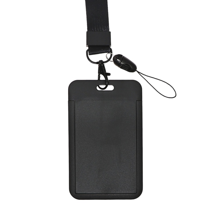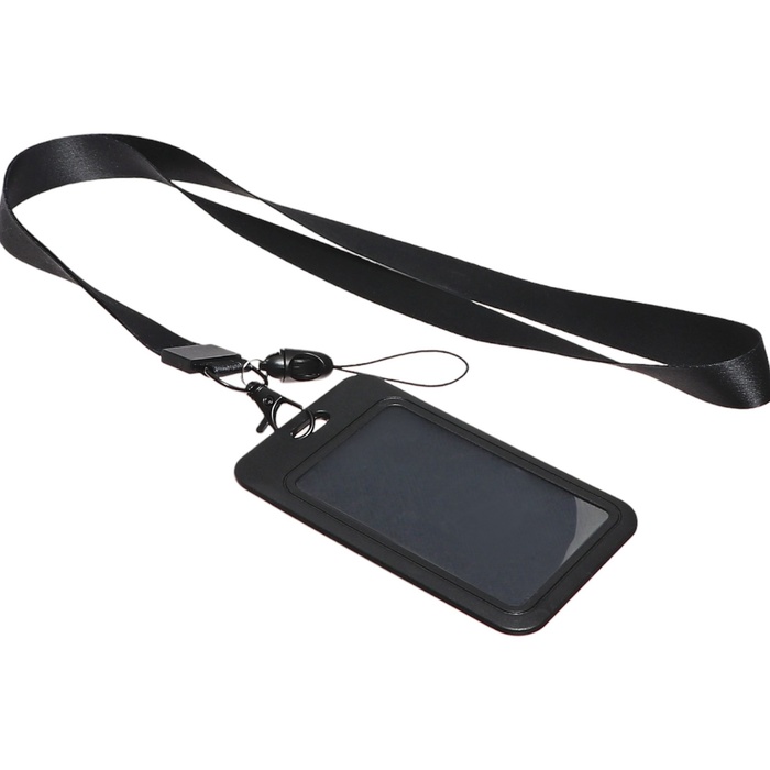 Бейдж-карман вертикальный пластиковый, внешний 110×68 мм, внутренний 85×54 мм, лента 80×2 см, чёрный.