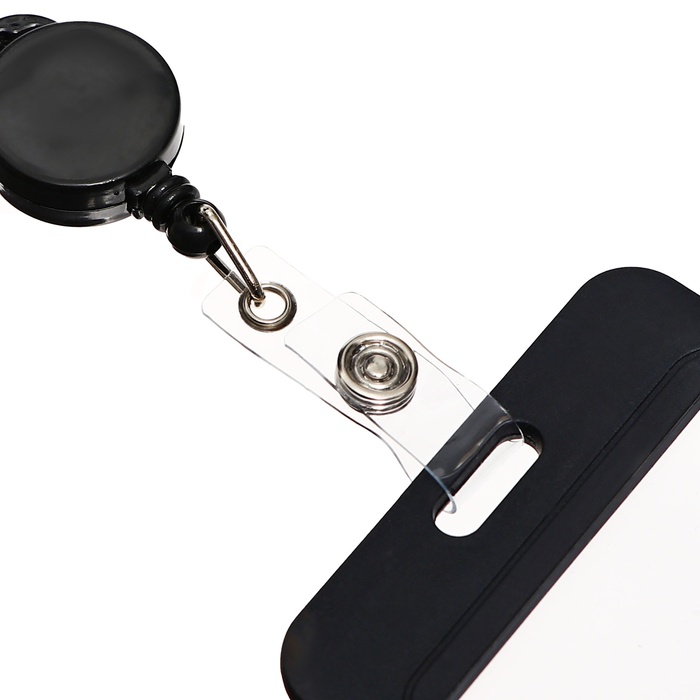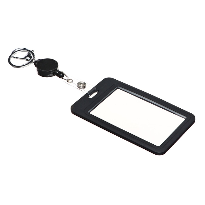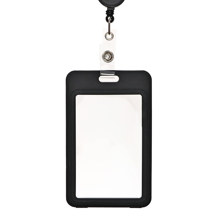 Бейдж - карман вертикальный пластиковый, внешний размер 110×70 мм, внутренний размер 85×54 мм, рулетка 40 см, чёрный