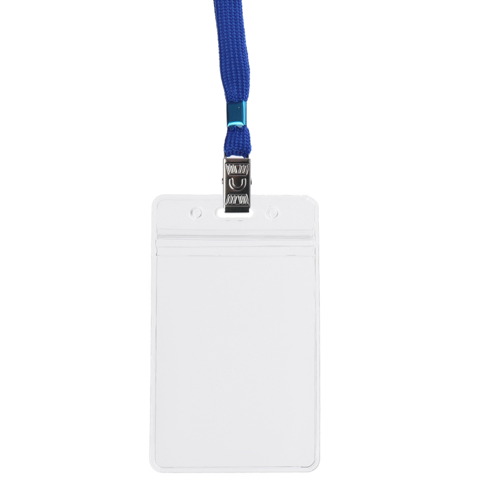 Бейдж вертикальный в комплекте с лентой. Материал бейджа - ПВХ, цвет - прозрачный. Имеет размер вставки 62х91 мм. Лента изготовлена из полиэстера, имеет металлический зажим. Ширина ленты составляет 12мм. Бейдж подходит для ношения именных карточек и пропусков.