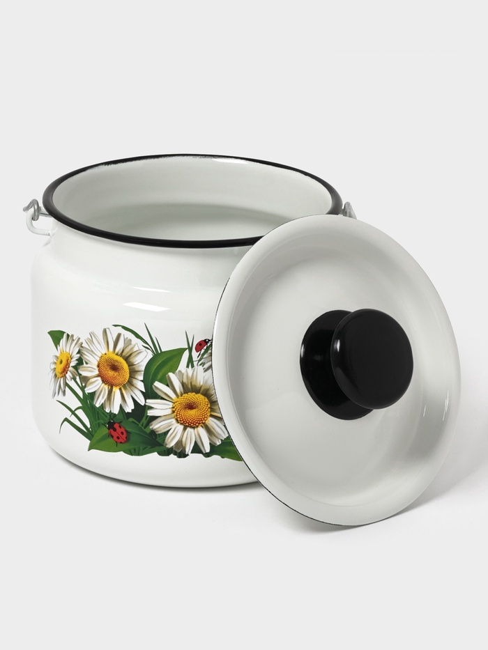 Эмалированный бидон на 2 литра с крышкой и ручкой — проверенная классика для дачи, пикника или кухни. Белоснежный корпус с аккуратным рисунком сочетает гигиеничность, прочность и простоту ухода.