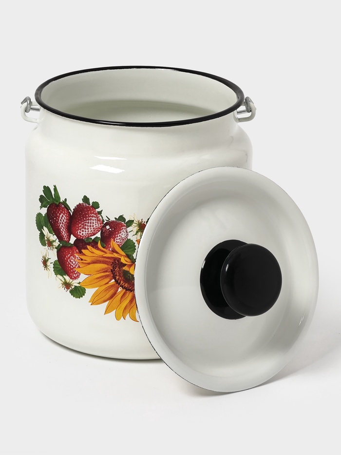 Эмалированный бидон на 3 литра с крышкой и ручкой — проверенная классика для дачи, пикника или кухни. Белоснежный корпус с аккуратным рисунком сочетает гигиеничность, прочность и простоту ухода.