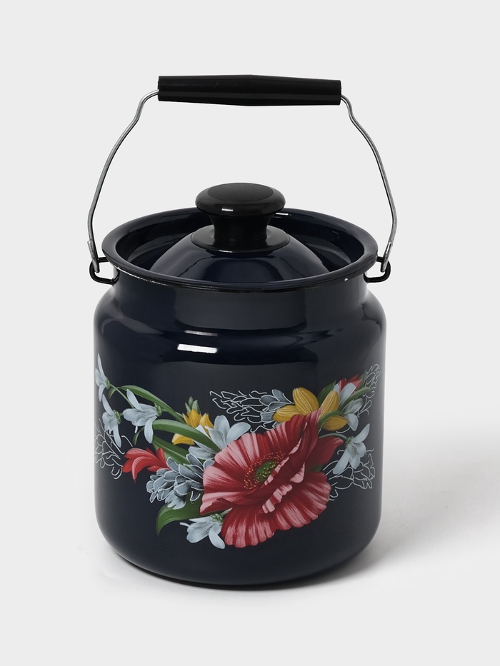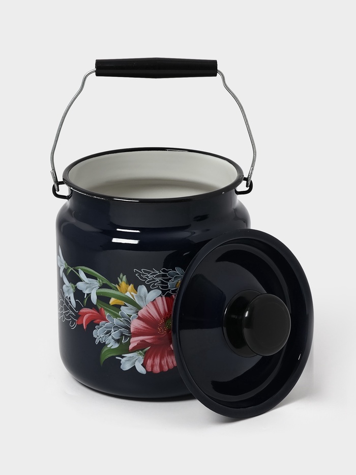 Эмалированный бидон на 3 литра с крышкой и ручкой — проверенная классика для дачи, пикника или кухни. Чёрный корпус с аккуратным рисунком сочетает гигиеничность, прочность и простоту ухода.
