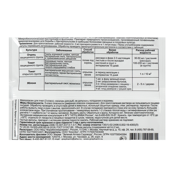 - для борьбы с бактериальными и грибными болезнями овощных и плодовых культур;