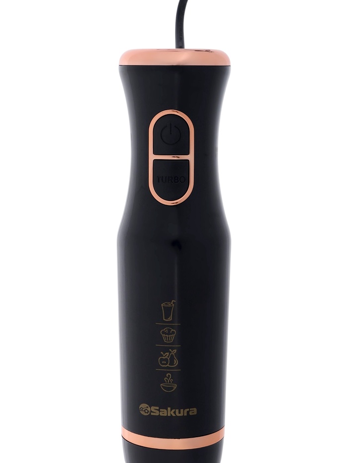 Блендер Sakura SA-6266SBK, погружной, 600Вт, 2 скорости, стакан 0.7л, чоппер 0.5л, венчик
