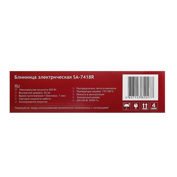 Блинница электрическая Sakura SA-7418R, 900 Вт, 20 см, красная