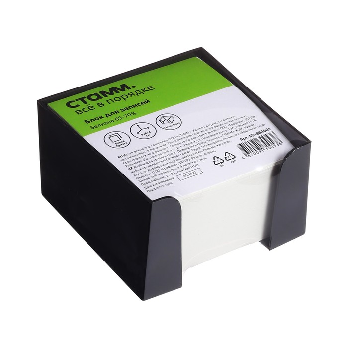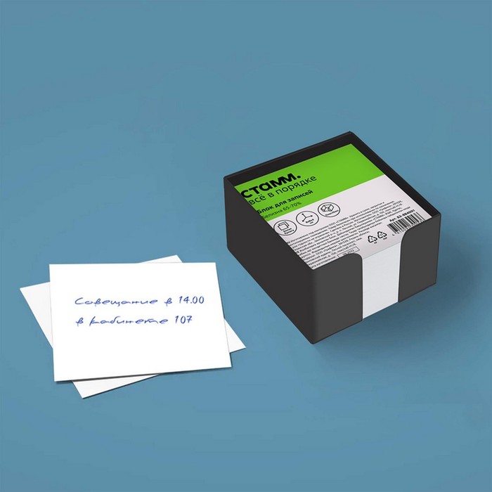 Блок бумаги в пластиковом прозрачном боксе Стамм подходит для оперативных записей необходимой информации.