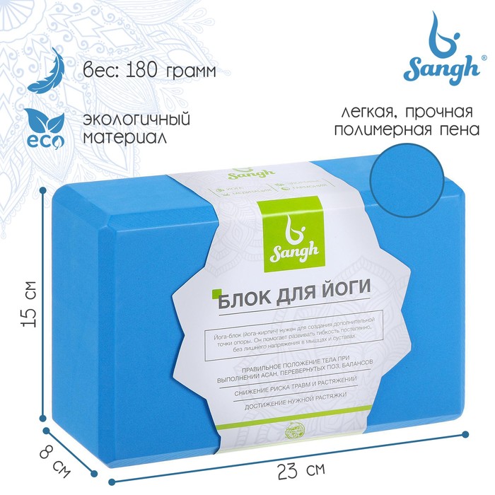 Йога-блок (йога-кирпич) нужен для создания дополнительной точки опоры. Он помогает развивать гибкость постепенно, без лишнего напряжения в мышцах и суставах. Необходим для тех, кто только начинает заниматься йогой, и кому не достает гибкости, чтобы иметь правильную опору для рук и ног при выполнении асан.