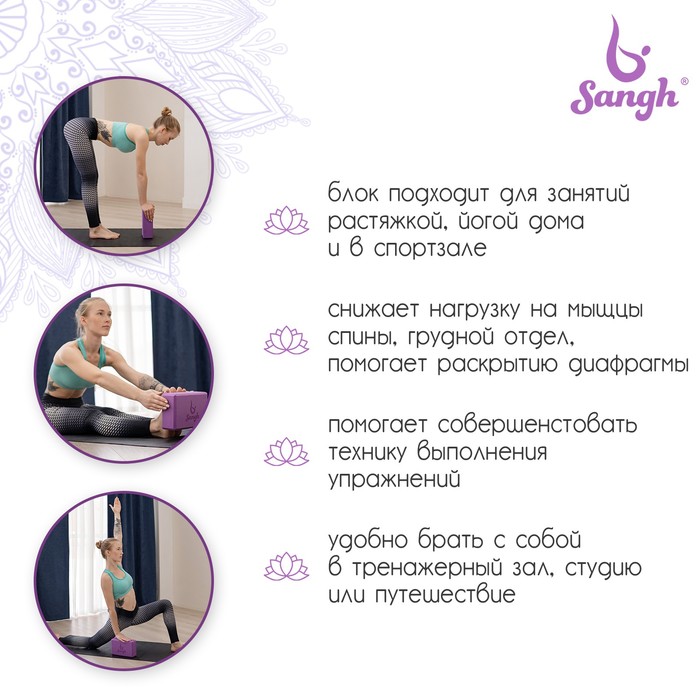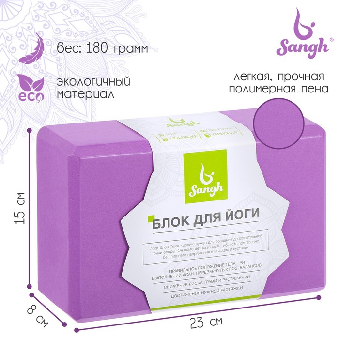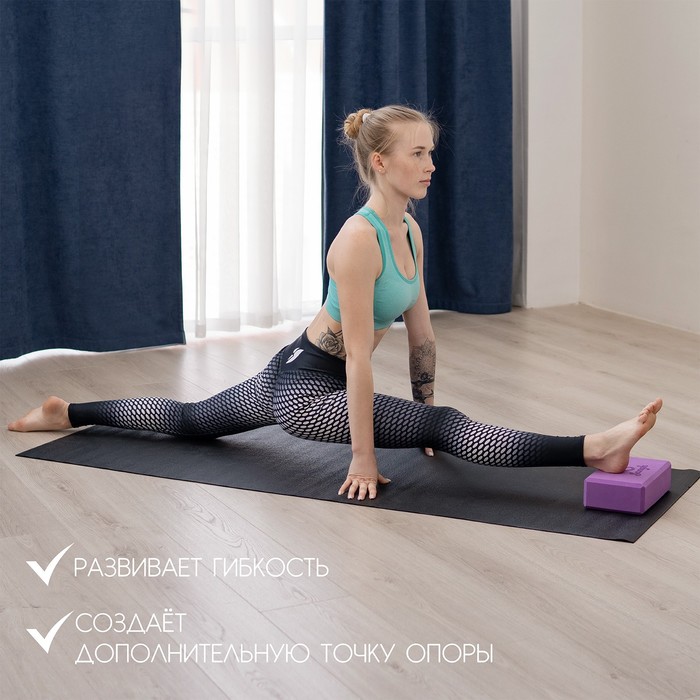 Йога-блок (йога-кирпич) нужен для создания дополнительной точки опоры. Он помогает развивать гибкость постепенно, без лишнего напряжения в мышцах и суставах. Необходим для тех, кто только начинает заниматься йогой, и кому не достает гибкости, чтобы иметь правильную опору для рук и ног при выполнении асан.