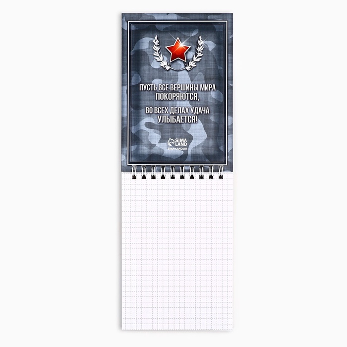 Блокнот станет прекрасным подарком на праздник.• Мечтай;• Записывай;• Выполняй.- Формат: А6;- Форма: прямоугольник;- Количество листов: 40;- Тип скрепления: на гребне/спирали;- Упаковка: плёнка.Состав: бумага, картон.