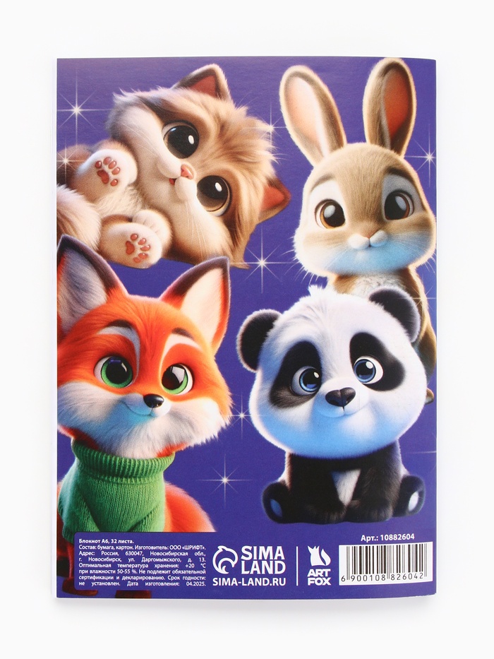 Блокнот А6, 32 л на скрепке, в клетку «Пушистики»