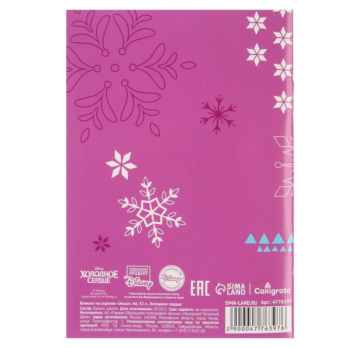 Блокнот А6, 32 листа на скрепке «Эльза», «Холодное сердце»