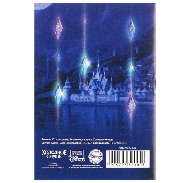 Блокнот А7, 16 листов, на скрепке, в клетку, «Холодное сердце»