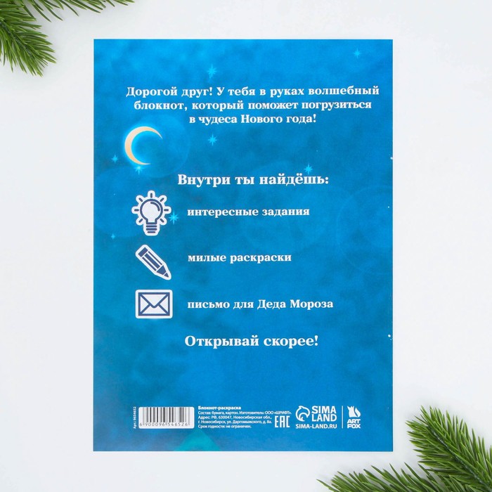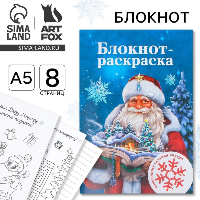 Блокнот детский с раскраской, А5, 8 страниц «Дед Мороз»