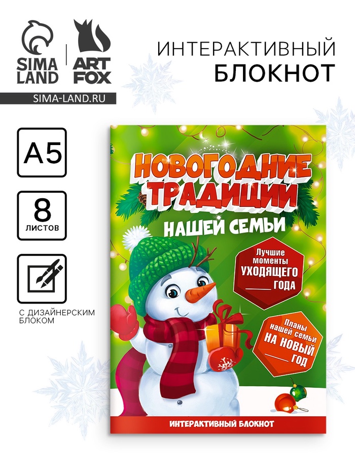 Блокнот детский с заданиями, А5, 8 листов «Новогодние традиции нашей семьи. Снеговик»