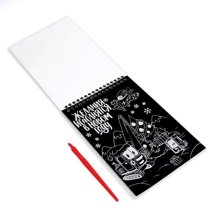 - 5 листов, покрытых чёрным слоем, на который нанесён контур рисунка. Процарапайте его с помощью штихеля, и сквозь контуры проступит сияющий разноцветный слой. Подержите рисунок под лампой или оставьте под дневным светом. После этого рисунок засияет в темноте.