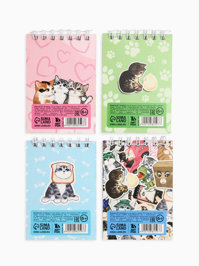 Блокнот на гребне в клетку А7, 32 л «Котики», МИКС