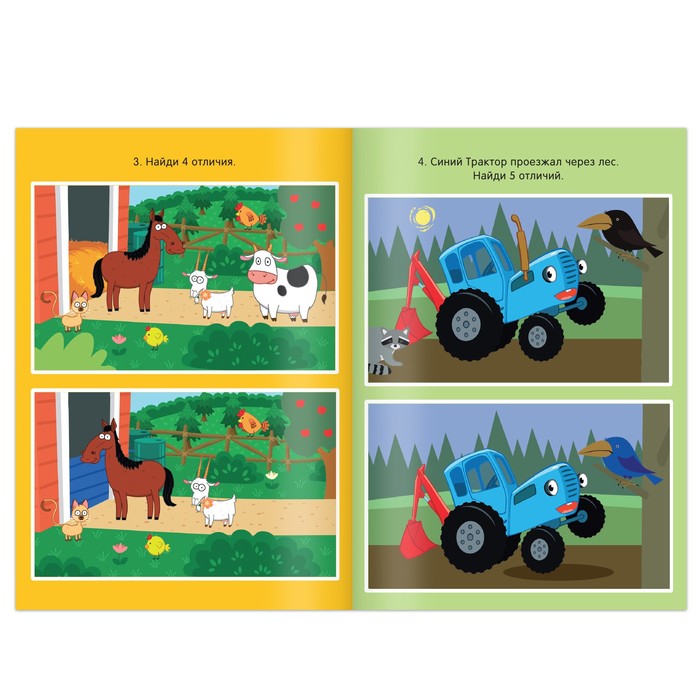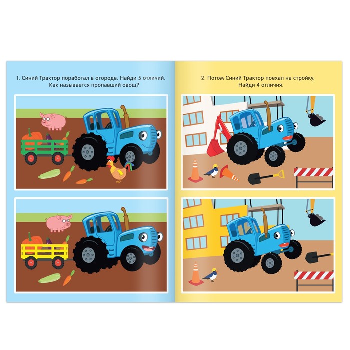 Кроха с удовольствием будет выполнять задания, а изображения героев любимого мультфильма «Синий трактор» сделают развивающие занятия ещё более интересными.