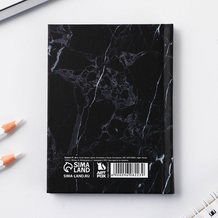Блокноты в твердой обложке А7, 64 л «Мрамор черный»