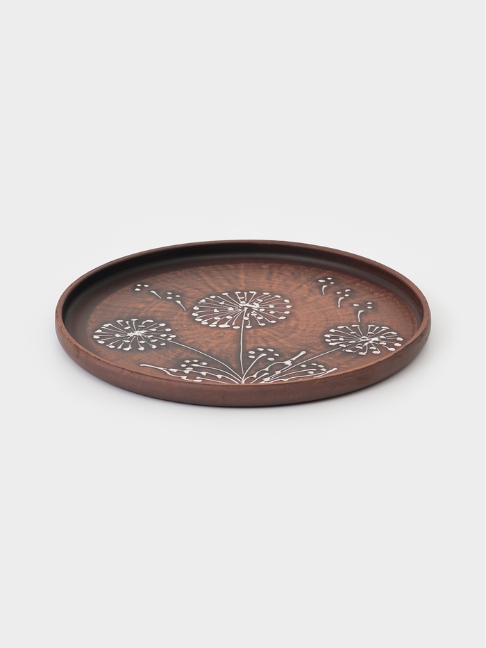 Блюдо для пиццы «Одуванчик» из красной глины — это эффектная и практичная посуда для подачи любимых блюд. Натуральный материал в сочетании с изящным растительным узором делает изделие не только функциональным, но и выразительным элементом сервировки.