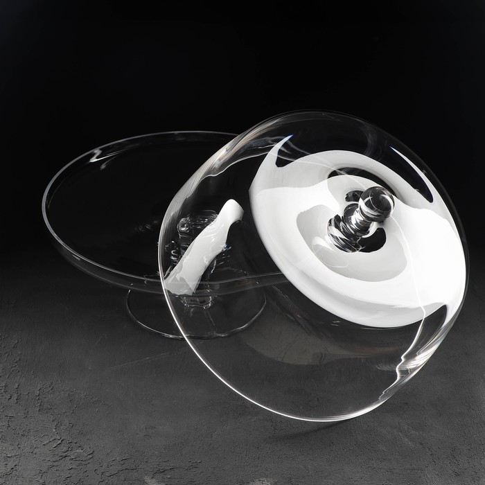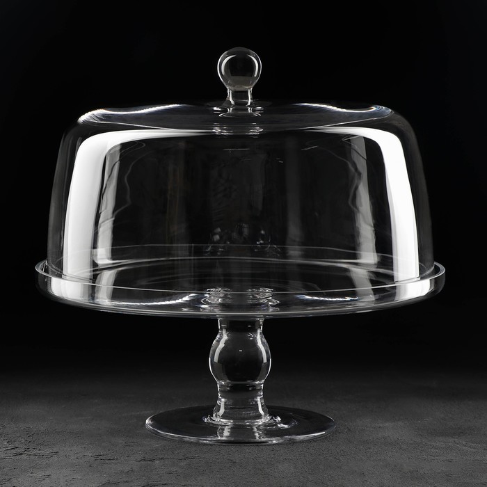 Подставка для торта – незаменимая посуда на любом празднике. Широкое, плоское блюдо позволит красиво подать выпечку, сладости, небольшие закуски и торты. Изготовлена из стекла, имеет удобную крышку с ручкой. Крышка защитит десерт от обветривания и лишних запахов, поэтому пирожные и торты в подставке можно ставить в холодильник.