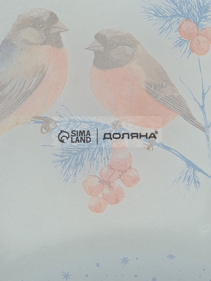 - Новогодний дизайн: рисунок снегирей на ветке выполнен вручную и передаёт лаконичную красоту зимы. Голубой фон подчёркивает свежесть образа и гармонирует с традиционной новогодней палитрой.