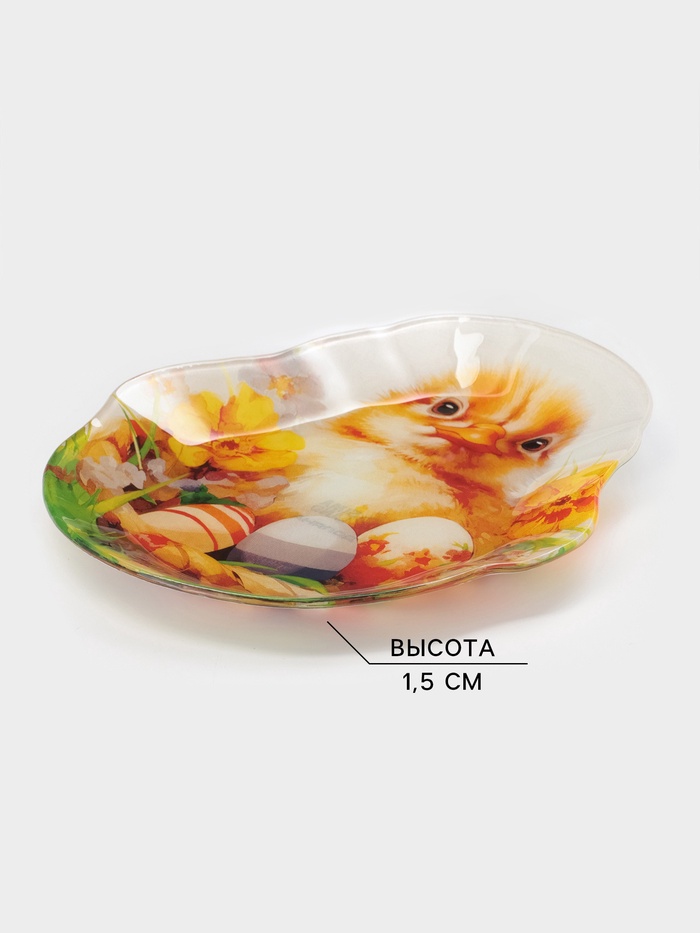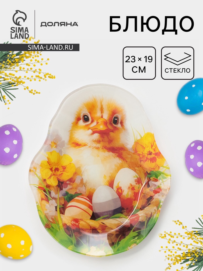 Это сервировочное блюдо станет прекрасным дополнением вашего праздничного стола. Изготовленное из стекла, оно имеет размеры 23×19×1,5 см и украшено милыми цыплятами, что идеально подходит для празднования светлого праздника Пасхи. Разноцветный дизайн добавит яркости и радости вашему интерьеру.