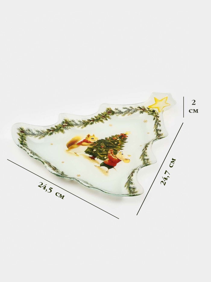 Блюдо сервировочное ёлочка "Новогоднее зверята" 24,5х24,7х2 см