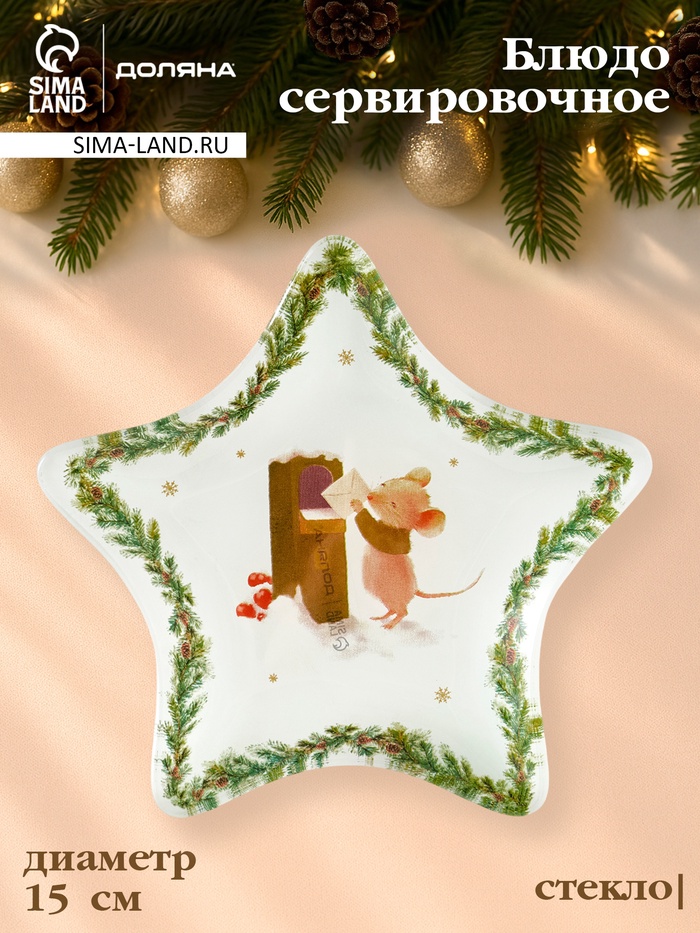 - Новогодняя тематика: рисунок выполнен в универсальной новогодней тематике. Декор не привязан к символу года, поэтому блюдо остаётся актуальным из года в год.