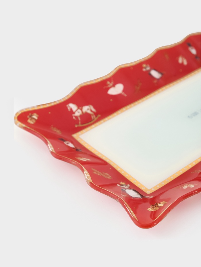 Новогодний стол заслуживает особого оформления! Сервировочное блюдо — прямоугольное стеклянное блюдо в бело-красной гамме с праздничным рисунком. Оно создано как для повседневного использования, так и того, чтобы подчеркнуть атмосферу зимнего праздника и аккуратно разместить угощения на обеденном столе.