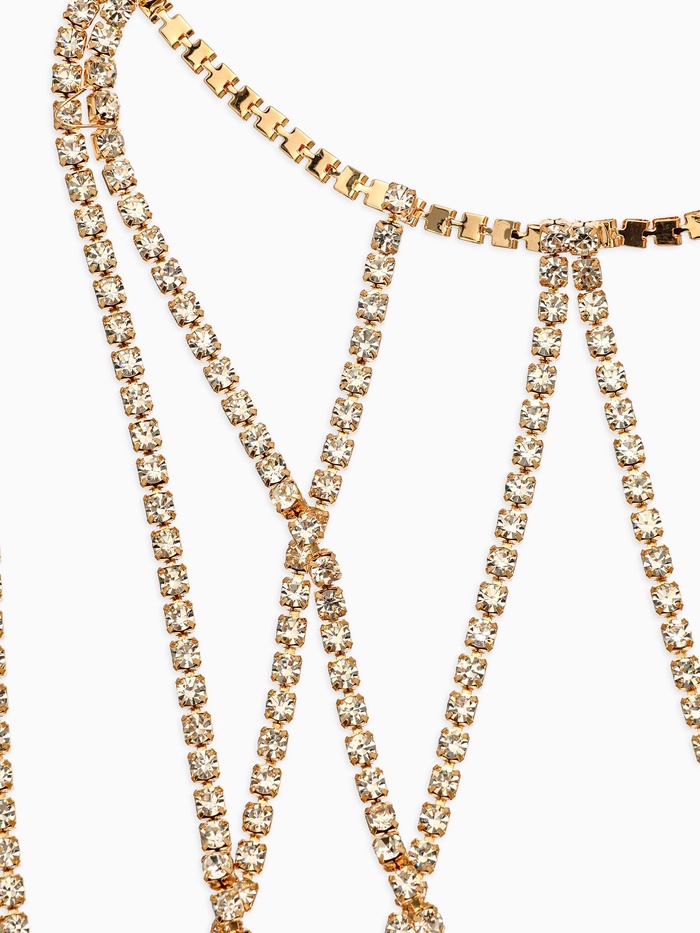 Запечатлейте очарование Востока с элегантным бодичейном «Ярусы», исполненном в стиле шейха. Преимуществом этого аксессуара является его сверхэластичная сетка, украшенная множеством крошечных страз, нанесённых специальной техникой «ажурной вышивки». Подобный рисунок не только выглядит оригинально, но и создает ощущение дороговизны и изысканности.