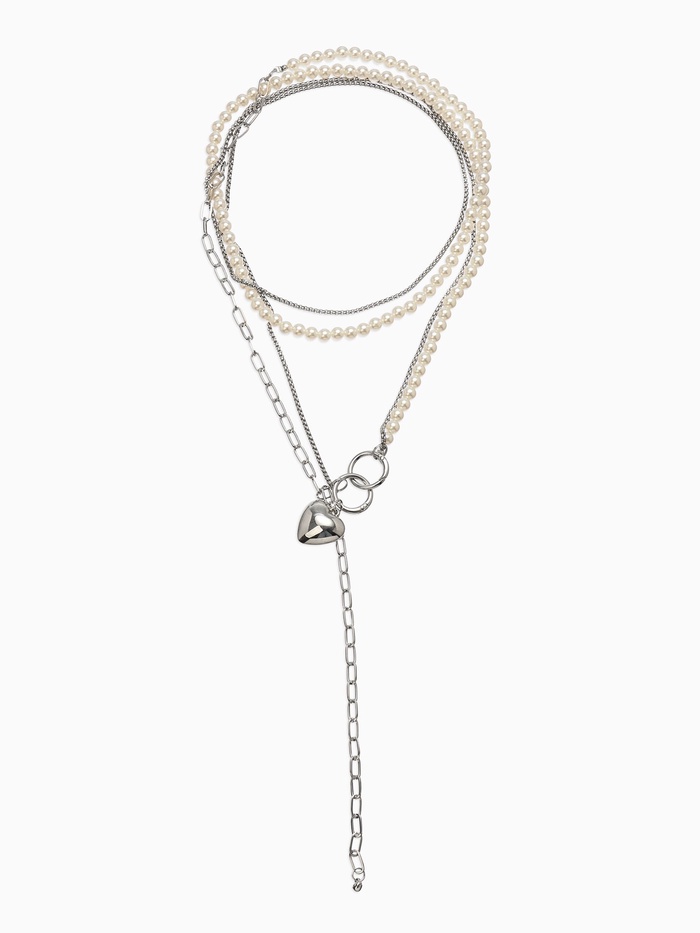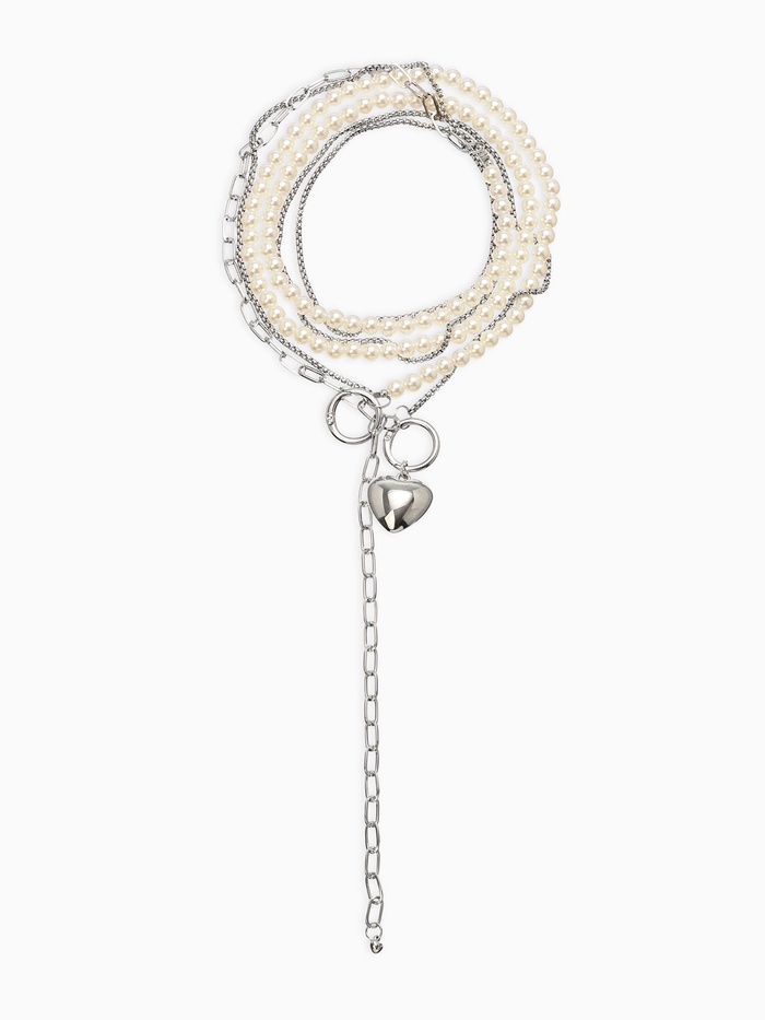Бодичейн женская «Сердце на цепочке» с бусинами, 135 см, белый в серебре