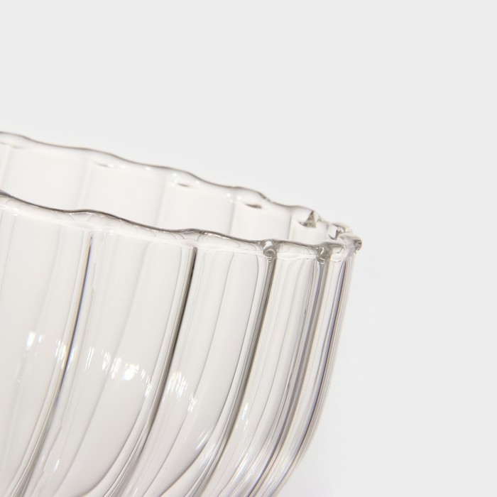 Изготовлен из качественного и прочного стекла, имеет золотую отводку по краю и оригинальную форму. Такая посуда украсит вашу сервировку и станет изюминкой праздничного стола.