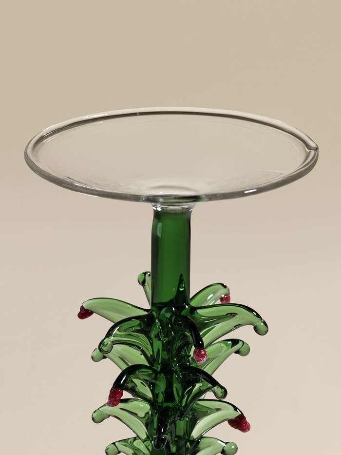 Эстетика прозрачного стекла, выполненного в зелёном оттенке, наполняет атмосферу праздником и возвращает к уюту зимних вечеров, когда семейные встречи становятся особенно важными.