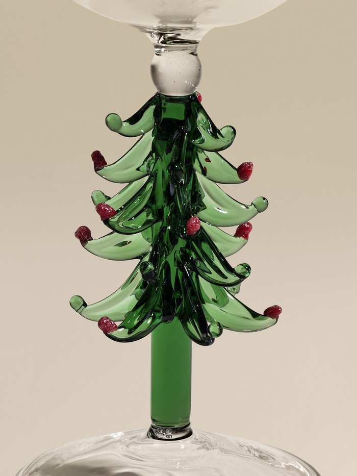 - Уникальный дизайн: на ножке бокала разместилась объёмная ёлочка из стекла с рельефной фактурой. Этот визуальный акцент напоминает о морозных зимних вечерах и ожидании чудес.