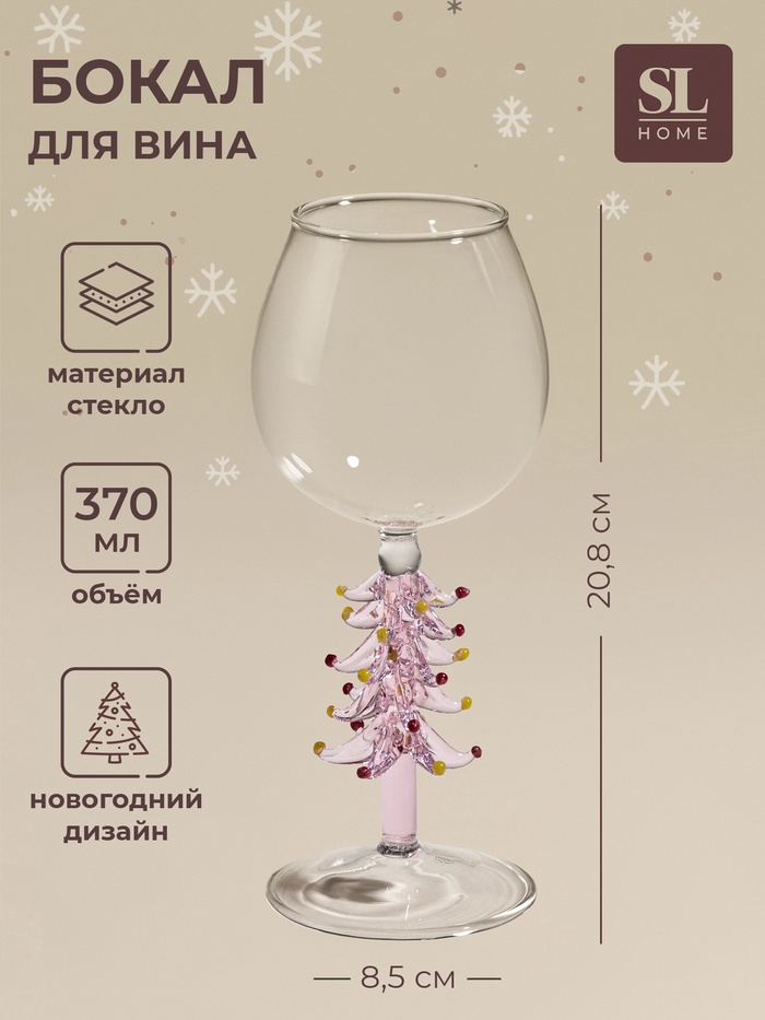 - Назначение — для вина: форма бокала поддерживает аромат и температуру напитка. Подходит для сервировки на Новый год, рождественские ужины или вечеринки в зимней тематике.