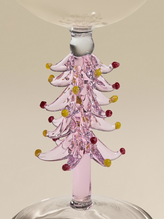 - Текстура бокала: стенки гладкие, что удобно для питья и мытья, а ёлочка на ножке — с фактурой, имитирующей ветви. Это добавляет тактильности и визуального интереса, особенно при свете свечей или гирлянд.