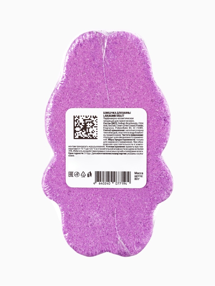 Бомбочка для ванн LabuBomb фиолетовая, 80 г — это маленький ритуал расслабления, который превращает обычное купание в роскошное SPA-погружение.