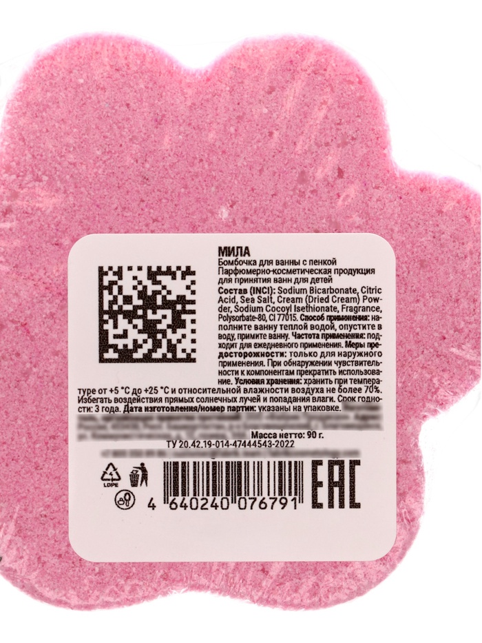 (Бикарбонат натрия, лимонная кислота, морская соль, сливки сухие, содиум кокоил изетионат, отдушка, пищевой краситель).