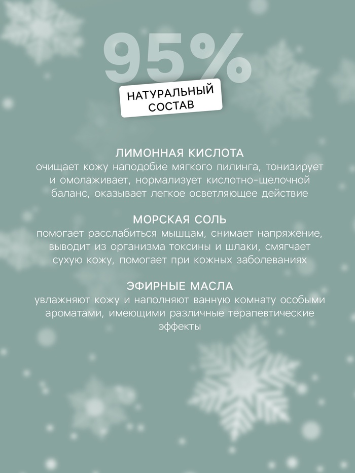 Польза бомбочек для ванной доказана исследованиями ее ингредиентов. Сода смягчает и разглаживает кожу, помогает избавиться от сухости. Этот компонент хорошо очищает кожу от омертвевших клеток и очищает поры. Лимонная кислота действует как мягкий химических пилинг без образования шелушащихся участков. Кожа становится более эластичной, клетки эпидермиса быстрее обновляются, морщинки сокращаются, а тон кожи выравнивается.