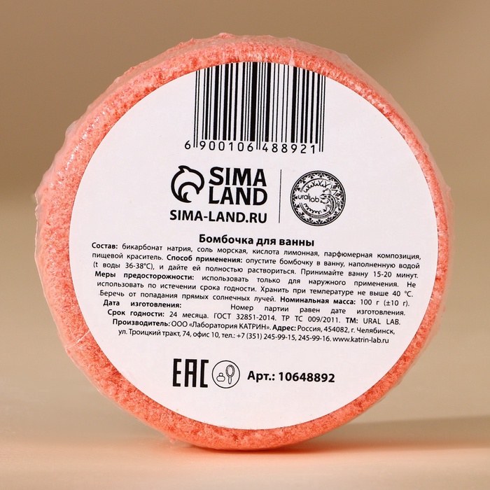 Бомбочка для ванны URAL LAB «Дед Мороз», 100 г, аромат ягодный тарт, Новый Год