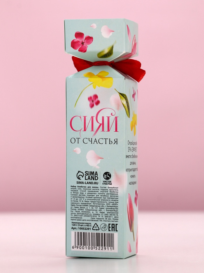 Бомбочки для ванны «8 Марта», 3×40 г, Чистое счастье