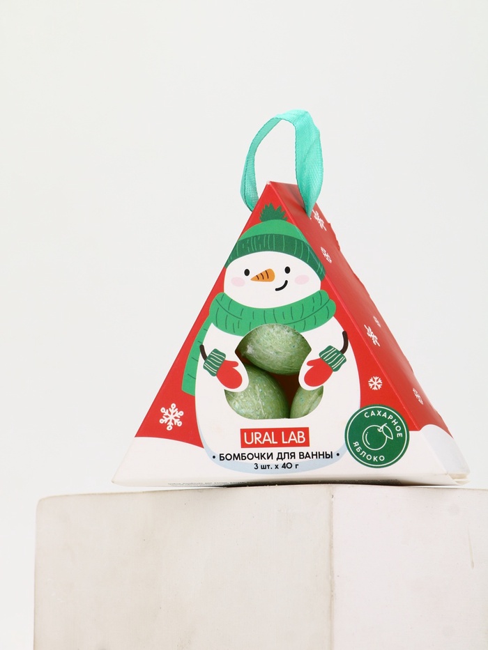 Бомбочки для ванны «Снеговик», 3 шт х 40 г, сахарное яблоко, URAL LAB