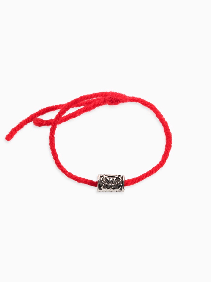 Браслет-амулет «Красная нить» с руной женская сила, длиной 30 см, выполнен в красном цвете с элементами из чернёного серебра. Руна женская сила символизирует гармонию, внутреннюю уверенность и раскрытие женской энергии. Этот амулет помогает женщинам обрести внутреннюю силу, поддерживает эмоциональный баланс и усиливает интуицию.