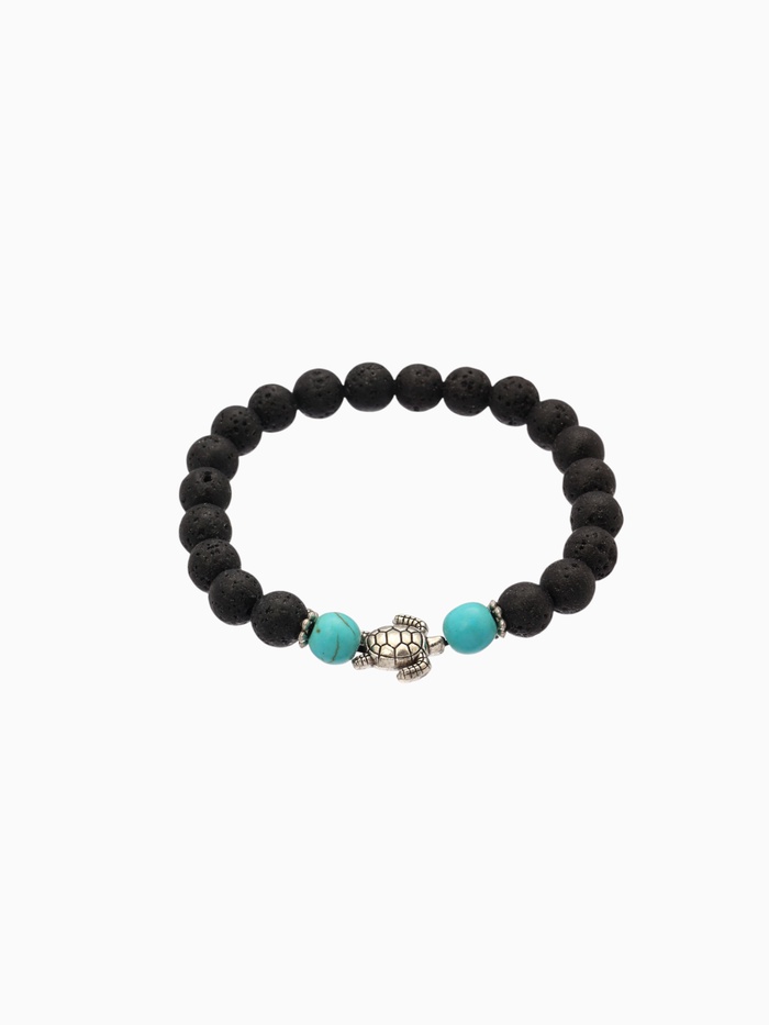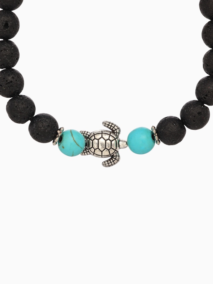 Браслет "Черепашка" камень пирит, лава, длина 18 см, цв. чёрный, бирюзовый