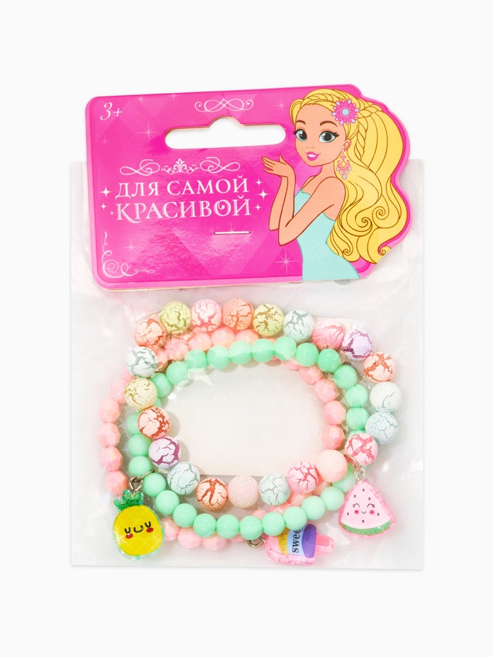 Браслет детский набор 3 шт. «Выбражулька. Фрукты и Бусины кракелюр», МИКС