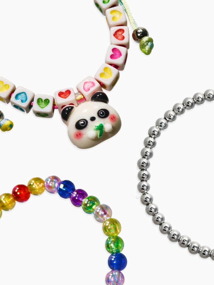 Браслет детский «Выбражулька», 3 шт. набор, панда ,бусины, цветной
