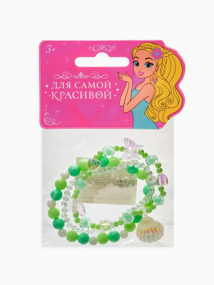 Браслет детский «Выбражулька», 3 шт. набор, жемчужина желаний, зеленый